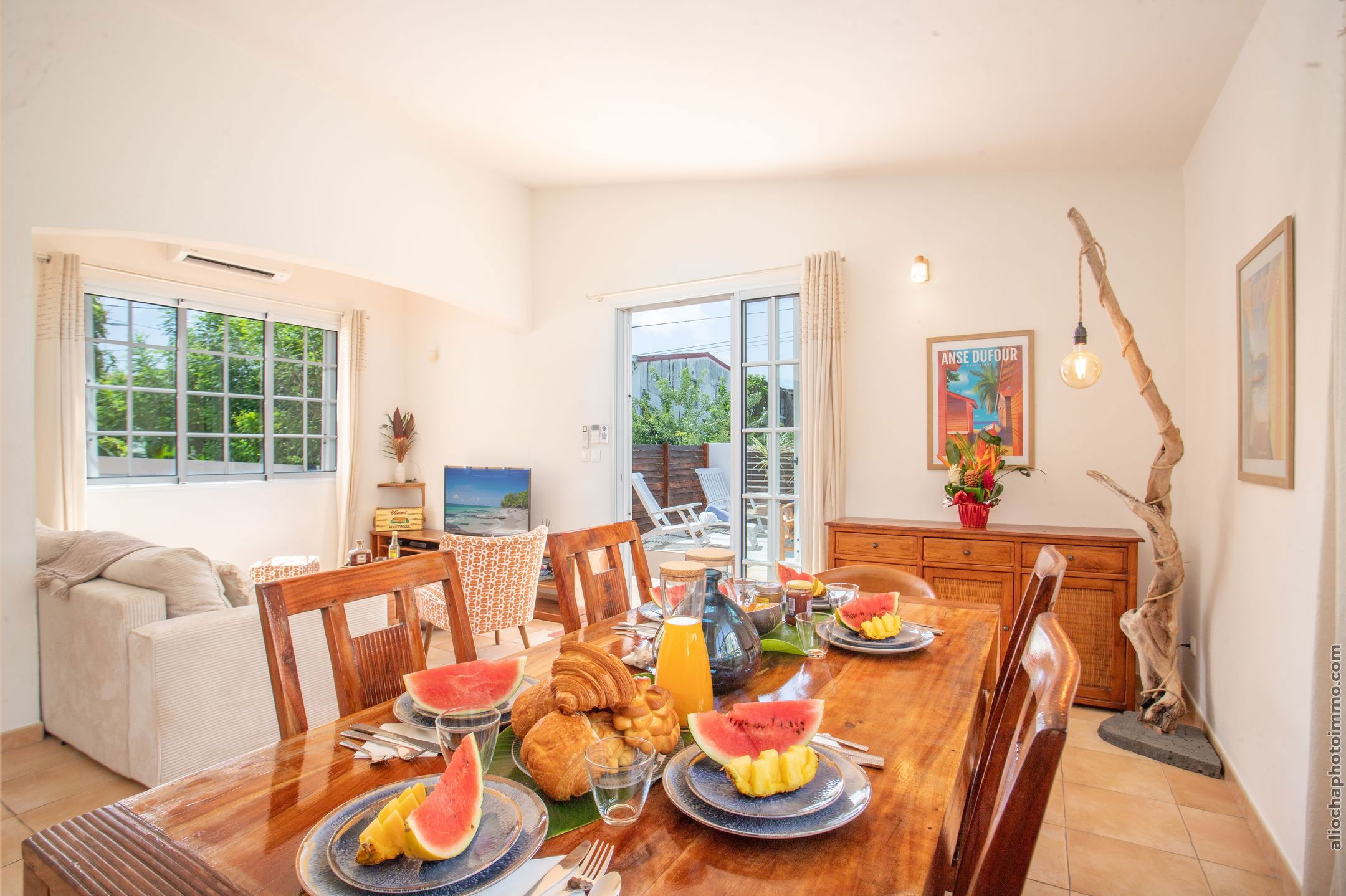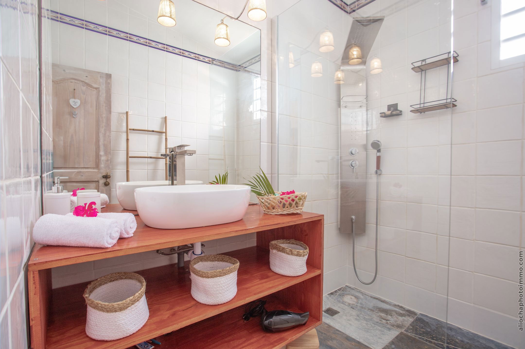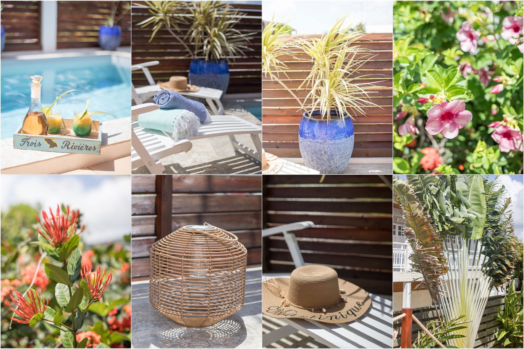 The villa offers generous and comfortable spaces: spacious rooms, equipped kitchens (dishwasher, oven, American fridge), convivial lounges and terraces overlooking a wooded garden. You can enjoy your meals around the pool, organise a Creole barbecue or simply relax in the jacuzzi.