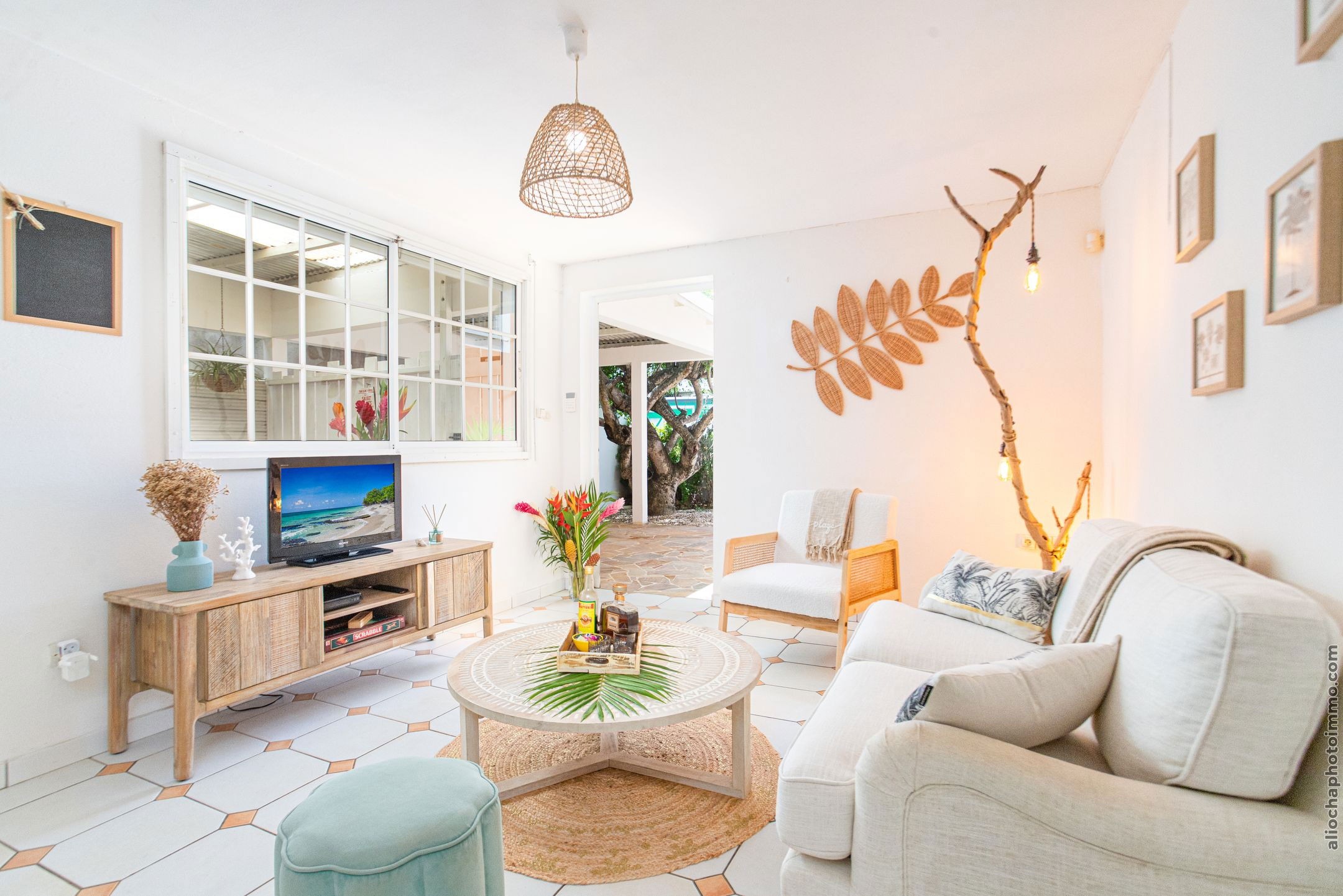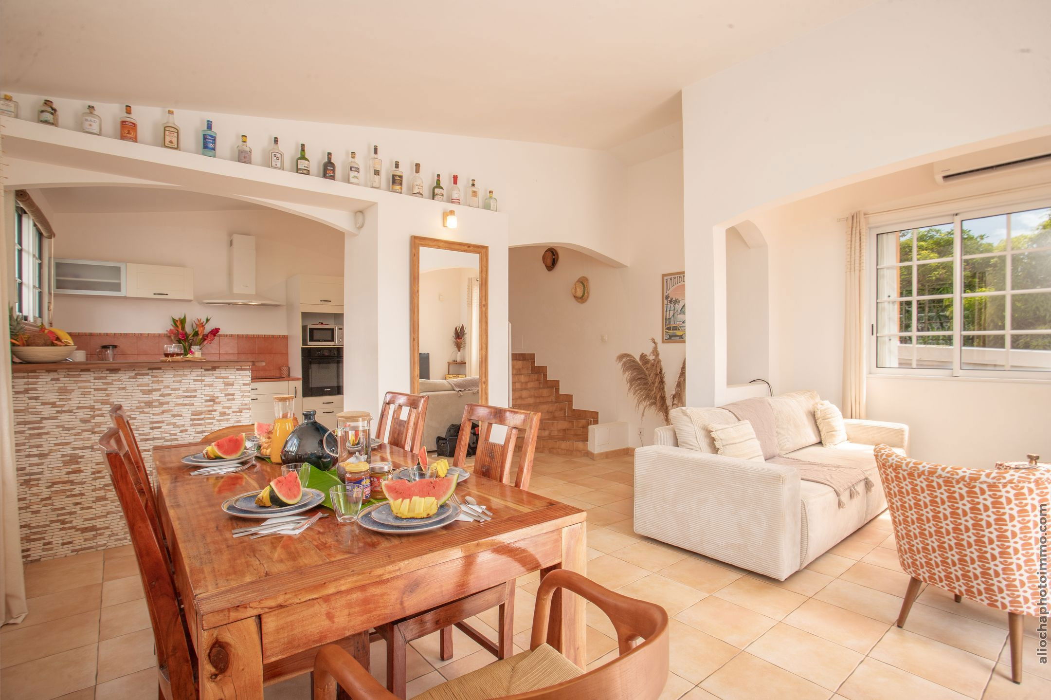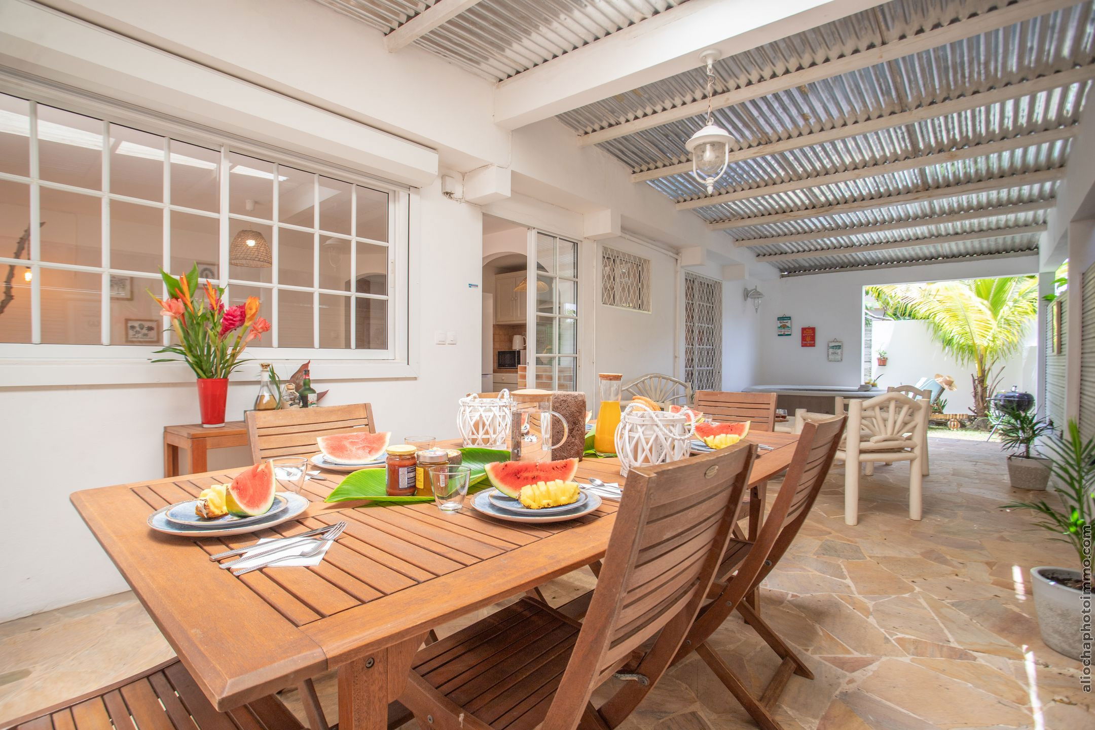 The villa offers generous and comfortable spaces: spacious rooms, equipped kitchens (dishwasher, oven, American fridge), convivial lounges and terraces overlooking a wooded garden. You can enjoy your meals around the pool, organise a Creole barbecue or simply relax in the jacuzzi.